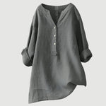 Isijavajte suptilnu eleganciju s ovom bijelom bluzom minimalističkog dizajna. Njen ležeran karakter s V izrezom i gumbima sprijeda nudi praktičnost i stil, dok prevrnuti rukavi dodaju nesputan i moderni dodir. Idealna opcija za svakodnevne i poslovne prilike.