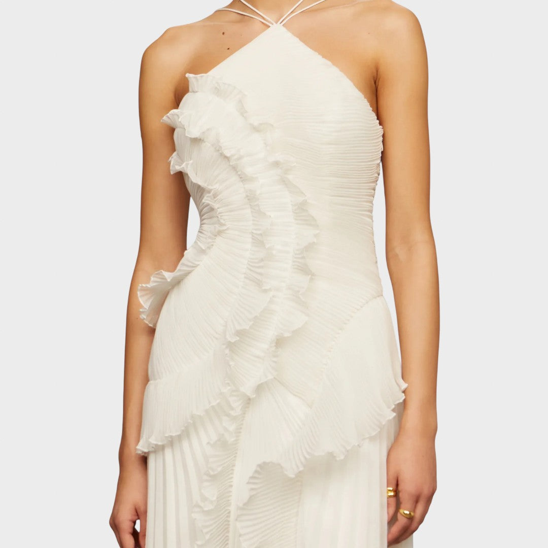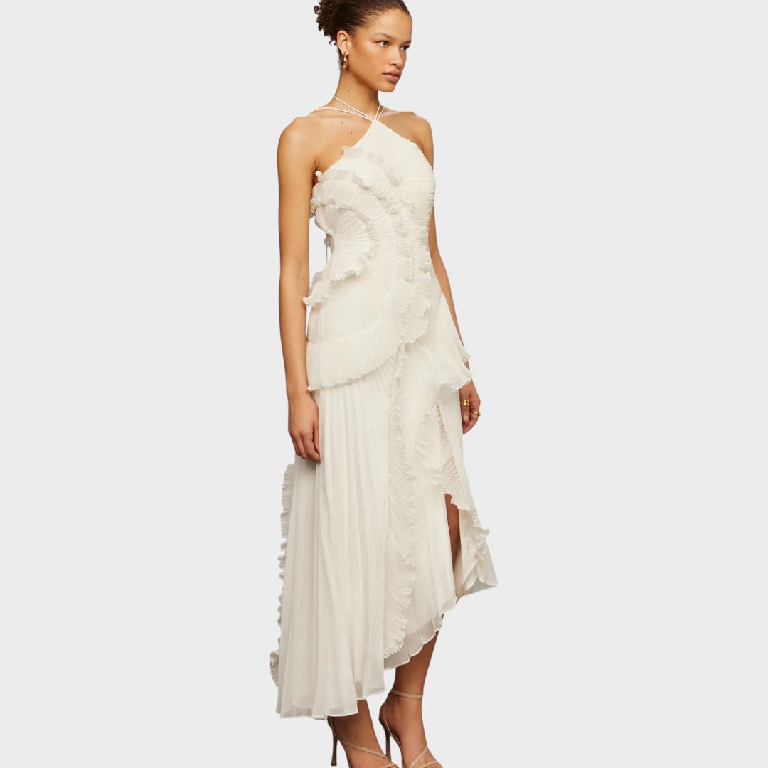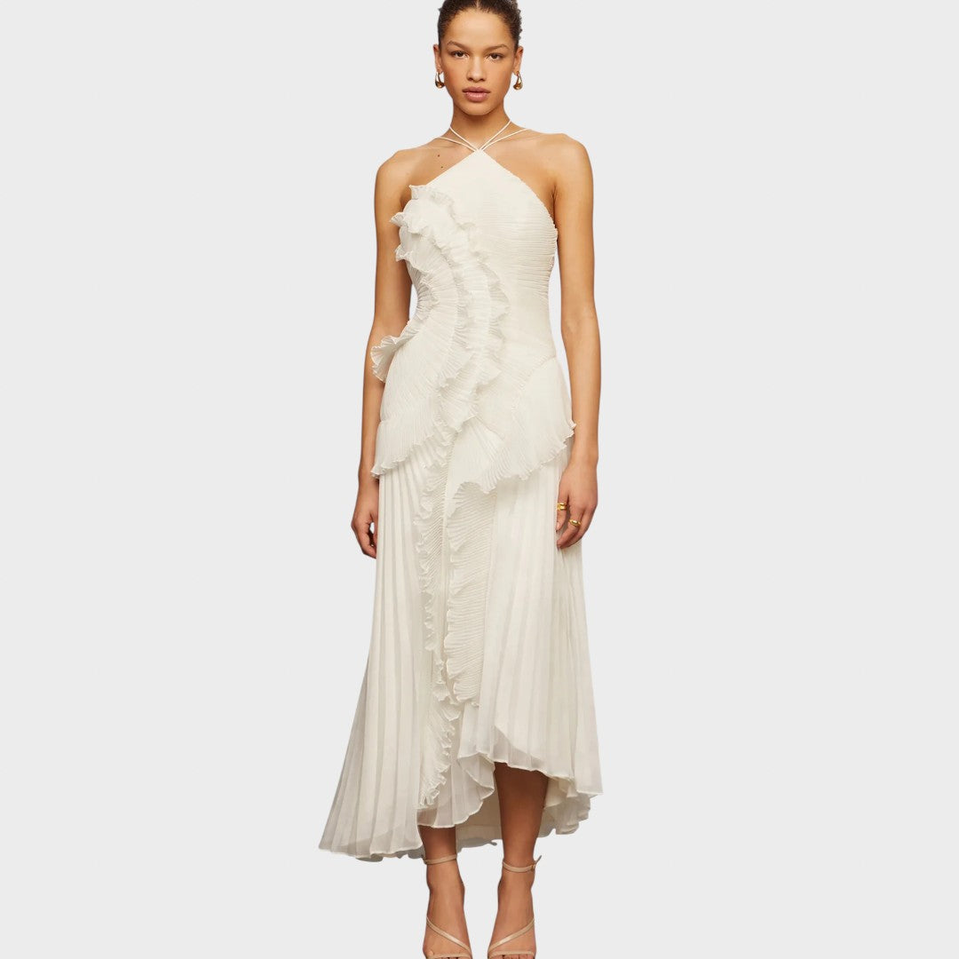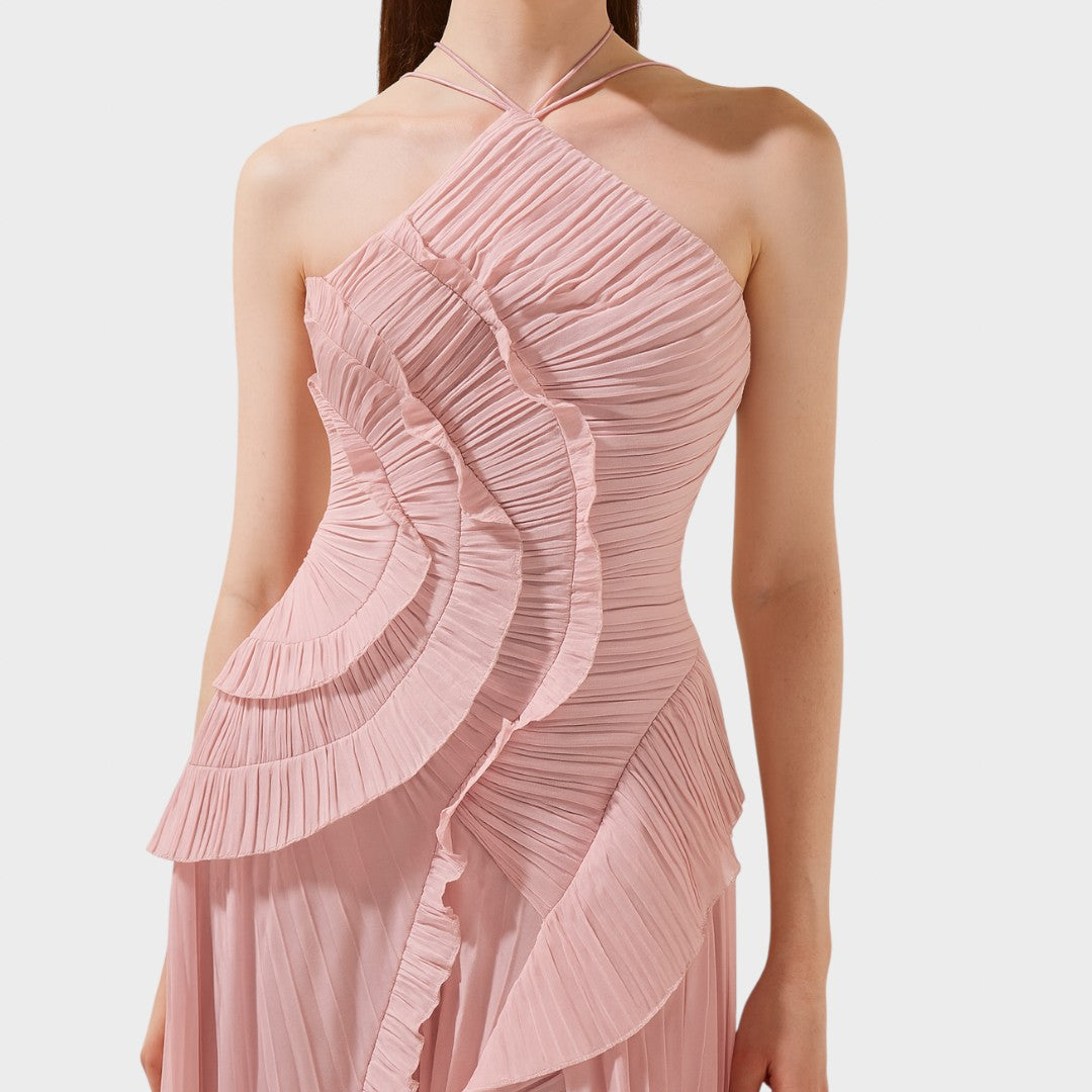 Haljina s volanima donosi razigran i lagan izgled koji osvaja na prvi pogled. Stvorena je za trenutke u kojima želite izgledati nježno, elegantno i bez napora privlačno.