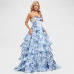 - Volani u slojevima s uzorkom plave porculanske boje evociraju romantičan i sofisticiran izgled