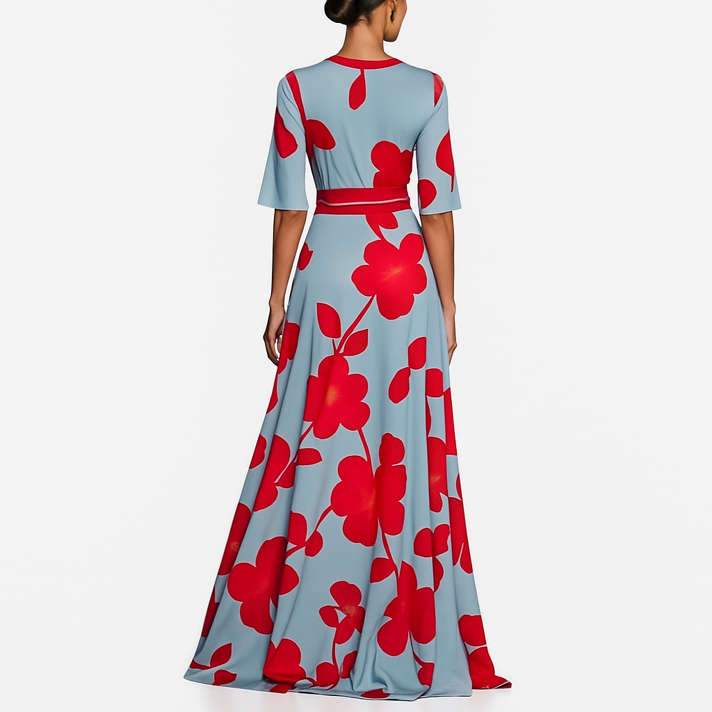 Efektan dizajn – statement cvjetni uzorak i lepršava maksi dužina osvajaju na prvi pogled.
