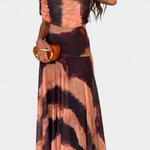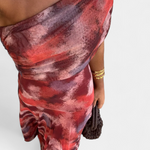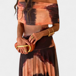 Umjetnička silueta koja spaja modernost i ženstvenost. Renata se ističe dekolteom s jednim ramenom koji s distinkcijom okviruje ključnu kost, uz to dolazi s lepršavom maxi suknjom koja donosi elegantan pokret. Njen tie-dye uzorak u toplim i blagim tonovima stvara hipnotički efekt pun karaktera.