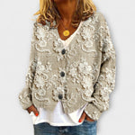 Otkrijte Stellu - Strickjacke s cvjetnim uzorkom, gdje se bezvremenske cvjetne kompozicije susreću s svakodnevnom elegancijom. Ova Strickjacke kombinira romantičnu privlačnost s udobnošću i idealna je za nošenje preko vaših omiljenih osnovnih komada.