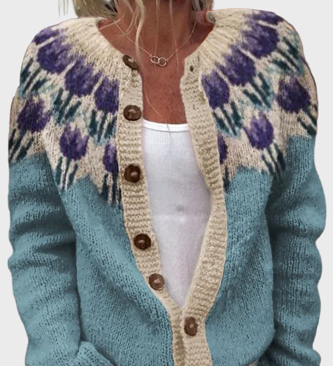 Pleteni Džemper s Elegantnim Cvjetnim Uzorkom