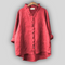 Lagana lanena bluzica s V-izrezom i suptilnim volanom duž kopčanja. Opušteni kroj i dugi rukavi koji se mogu podići pružaju udobnost, dok asimetrična visoka-doljnja rub daje moderni izgled.