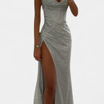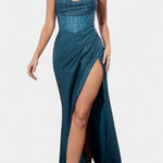 Odvažna, dramatična i elegantna, haljina Ines je komad dizajniran da zasja u svakoj posebnoj prilici. Njena uska silueta sirene, korzetni gornji dio i visoki prorez na bedru stvaraju upečatljiv izgled koji naglašava sofisticiranost. Spageti naramenice i sjajni završetak upotpunjuju modernu i glamuroznu estetiku.