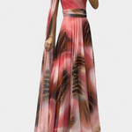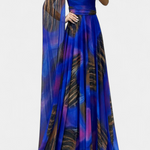 Romantična i sofisticirana, haljina Nives unosi skulpturalni i ženstveni duh zahvaljujući izrezu s jednim ramenom i drapiranoj rukavi. Delikatni cvjetni aplikacija podiže dizajn, dok se maxi silueta fluidno kreće s gracioznošću, stvarajući nezaboravnu prisutnost na bilo kojem događaju. Izrađena od mekog i elegantnog materijala, balansira udobnost s rafiniranim glamuroznošću.