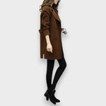 Dvoslojni cardigan-kaput šalje jasnu poruku stila. Čist dizajn, široki reveri i ležerno krojena silueta pružaju premium izgled od poslovnog sastanka do opuštenog izlaska. Mekani, kvalitetni materijal, kaput do koljena i suverene linije – jednostavno za kombiniranje preko bluze, džempera ili hoodija. Ukratko: modni upgrade koji spaja performanse i eleganciju.