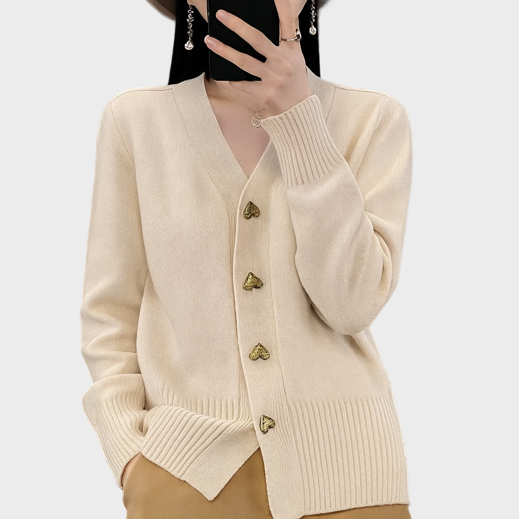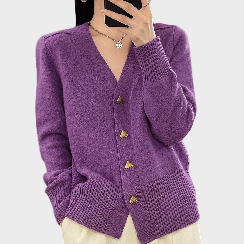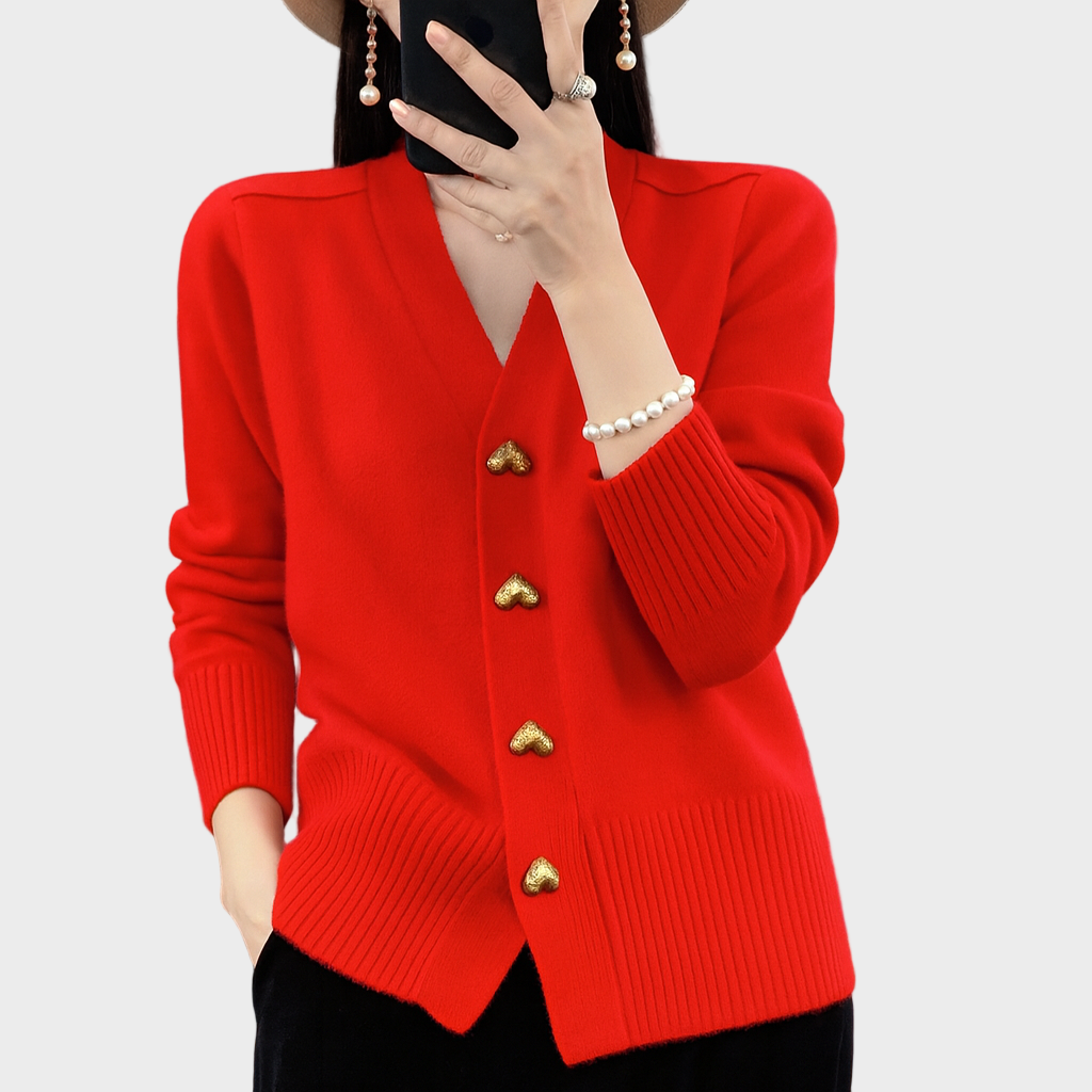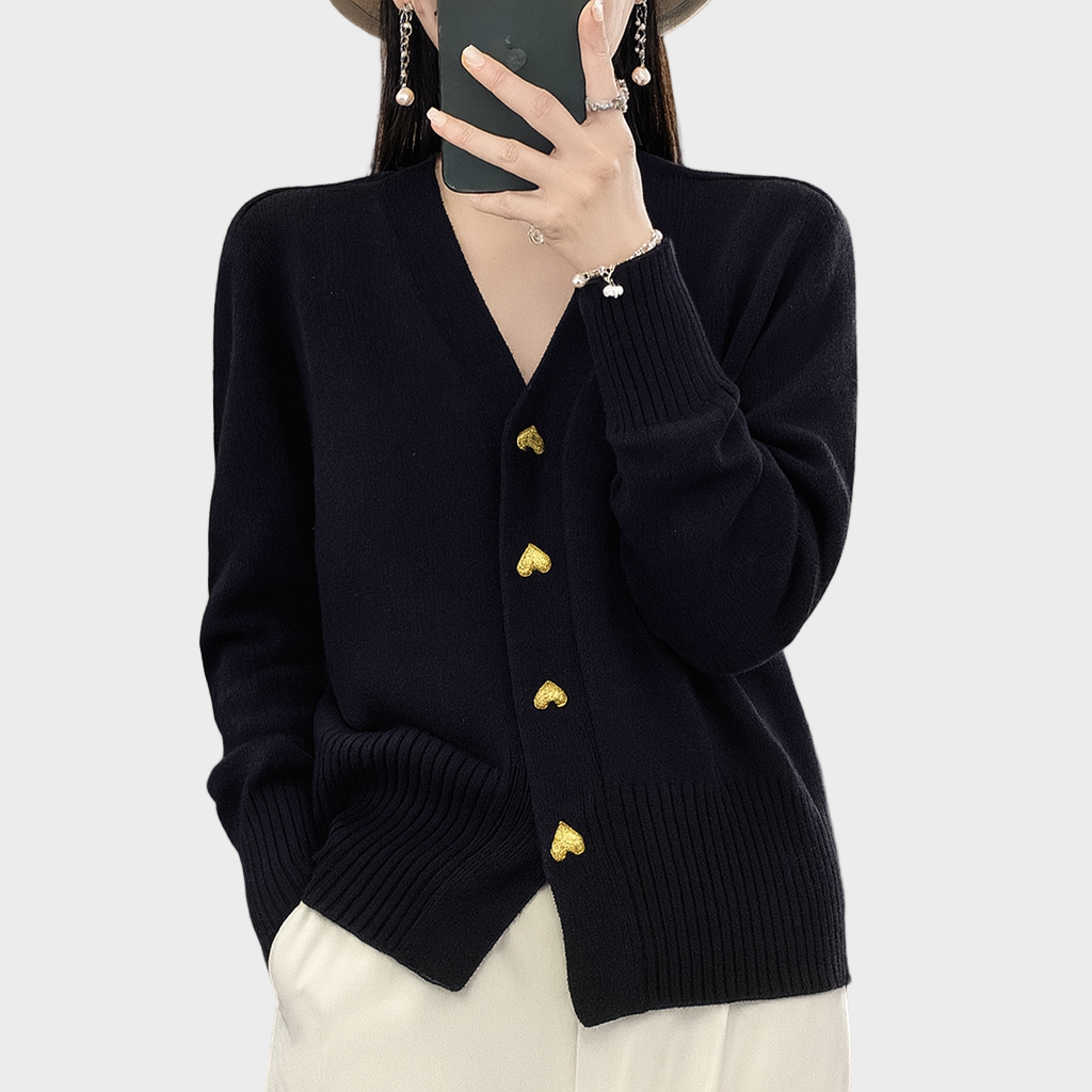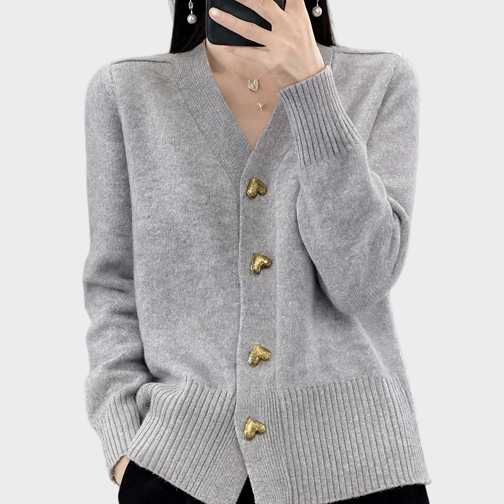 - Metalni gumbići u obliku srca – dodaju romantičan naglasak i čine kardigan upečatljivim komadom.