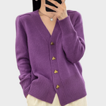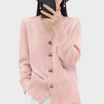 Sara – Mekani pleteni kardigan očarava svojim nježnim, ženstvenim šarmom i elegantnom siluetom. Fina pletenina ugodno prianja uz kožu i pruža udobnost tijekom cijelog dana. Metalni gumbići u obliku srca dodaju romantičan detalj i čine svaki outfit posebnim. V-izrez naglašava liniju dekoltea, dok rebrasti rubovi osiguravaju savršeno pristajanje. Lako se kombinira – od casual-chic izgleda s trapericama do romantičnih kombinacija s suknjom.