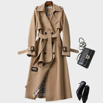 Klasičan dvoredni kroj s remenom u struku, ramenim epoletama i remenčićima na manšetama. Čistih linija i profinjenih detalja, leprša pri hodu i lako se stilizira uz poslovne i casual kombinacije. Dužina ispod koljena daje dozu elegancije, a kvalitetna tkanina lijepo drži formu sezonama.