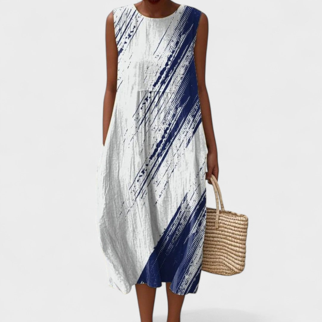 Ova lagana i prozračna haljina savršeno kombinira stil i praktičnost, dajući vam slobodu kretanja i sofisticiran izgled u svim prigodama. Njezin opušteni kroj i cvjetni uzorak čine je idealnim izborom za plažu, šetnju gradom ili ljetne susrete.