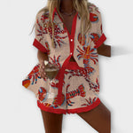 Set Daphira donosi bez napora šarm u tvoju ljetnu garderobu. S simpatičnim uzorkom rakova i prozračnom mješavinom lana, ovaj dvodijelni set je idealan za izlete na plažu, brunch na otvorenom ili opuštene šetnje na suncu.
