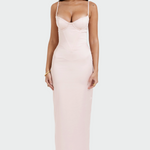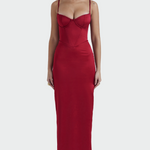 Elegantna saten haljina koja isijava sofisticiranost i bezvremensku finu. Njezina mekana tkanina harmonično obavija siluetu, dok minimalna linija čini da je idealna za svaku priliku. Savršena za večernje izlaske, vjenčanja ili elegantne pojave s diskretnom luksuzom.