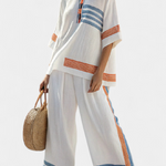 Strukturirana svježina s morskim osjećajem. Set Daisy ističe se svojim čistim i modernim dizajnom, obogaćen ručno izrađenim detaljima u živopisnim bojama. Široka majica i hlače širokih nogavica stvaraju opuštenu siluetu koja prenosi lakoću i stil s osobnošću.