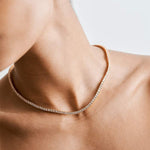 Dodajte dozu luksuza s Rivière ogrlicom, obloženom 14k zlatom. Ovaj izvanredni komad nakita ima stalnu liniju sjajnih kamenčića, stvarajući prekrasan i elegantan efekt. Savršeno za svaku priliku, pruža klasičan i otmjen akcent koji će unaprijediti vaš stil.