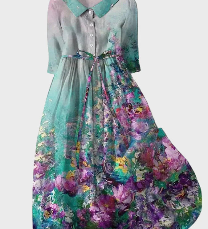 Duga Haljina s Impresionističkim Uzorkom