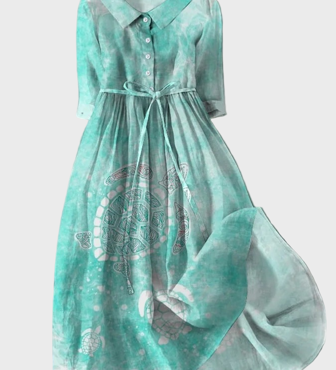 Tirkizna Haljina s Uzorkom Morske Kamenice