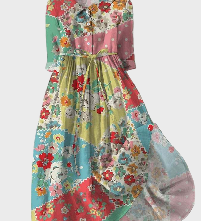 Višebojna Cvjetna Haljina u Patchwork Stilu