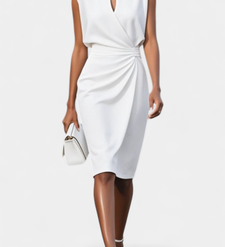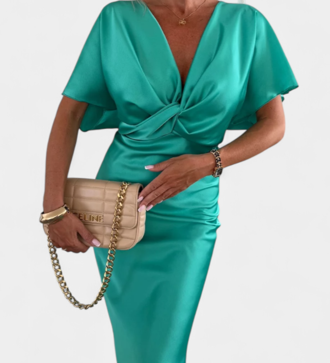 Lea Elegantna Haljina s Uvijenim Strukom i V-Izrezom