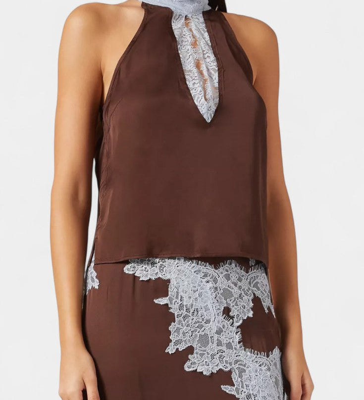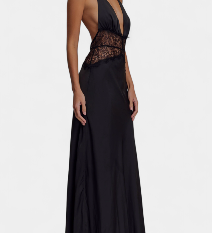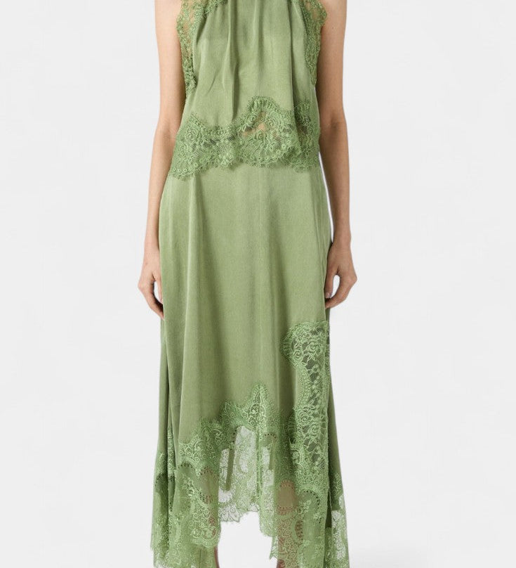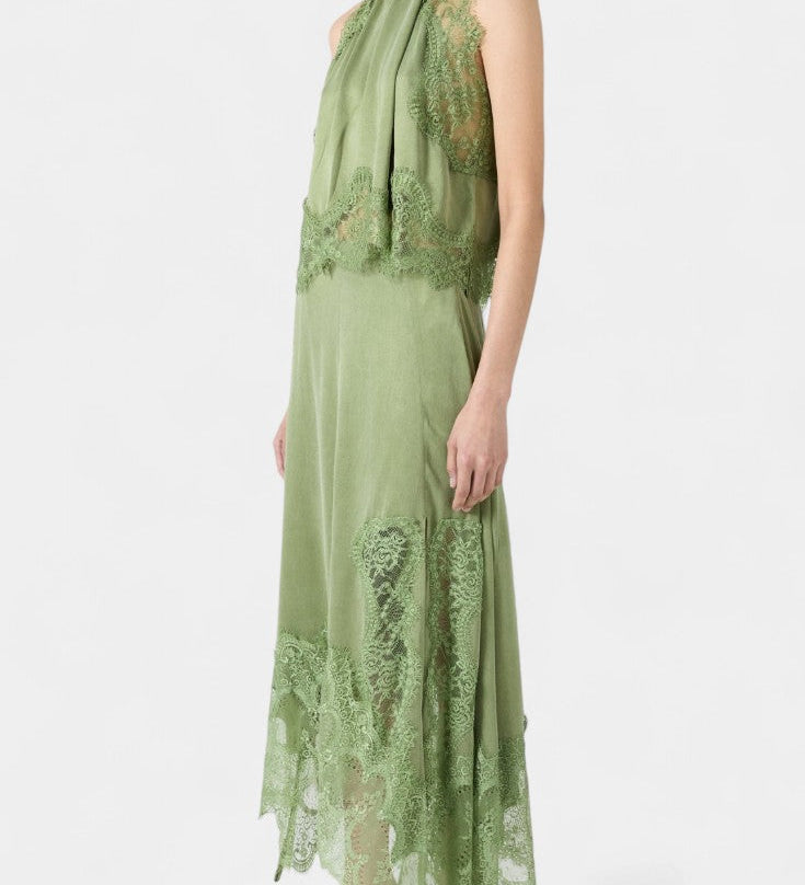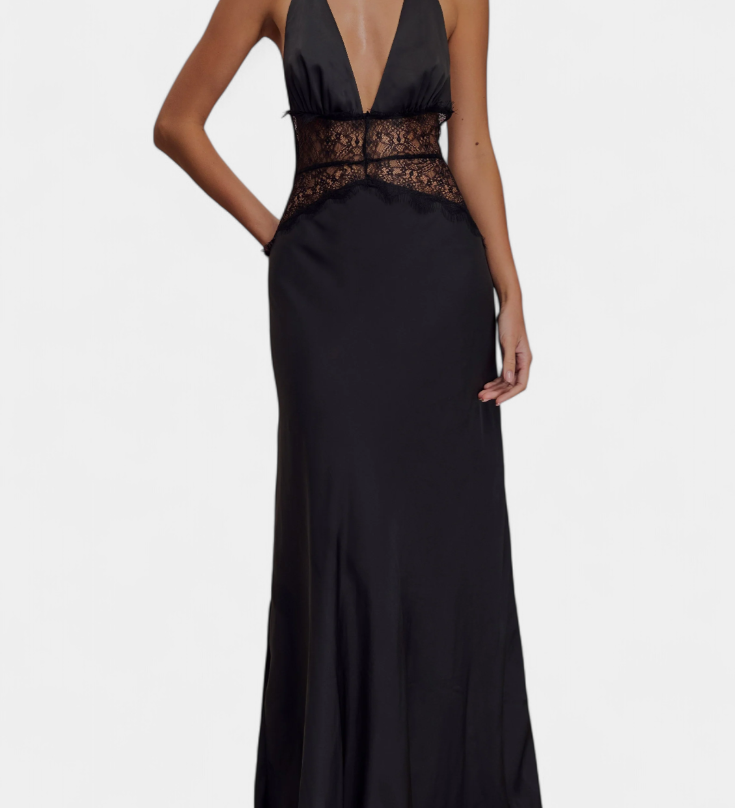 Martina Duga Haljina s Halter Izrezom i Prozirnim Čipkastim Strukom