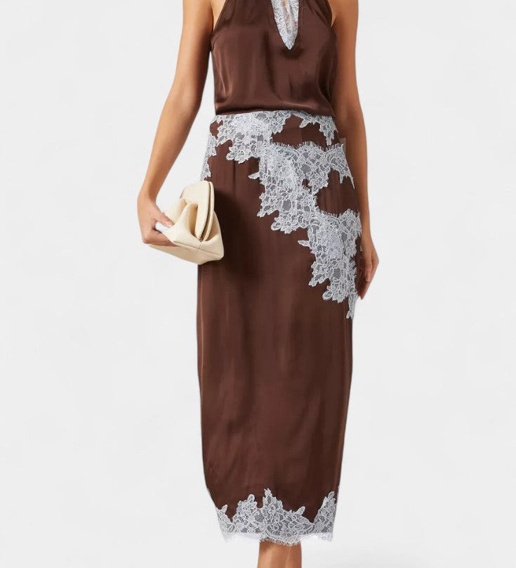 Dragica Set Topa i Suknje s Kontrastnim Čipkastim Panele