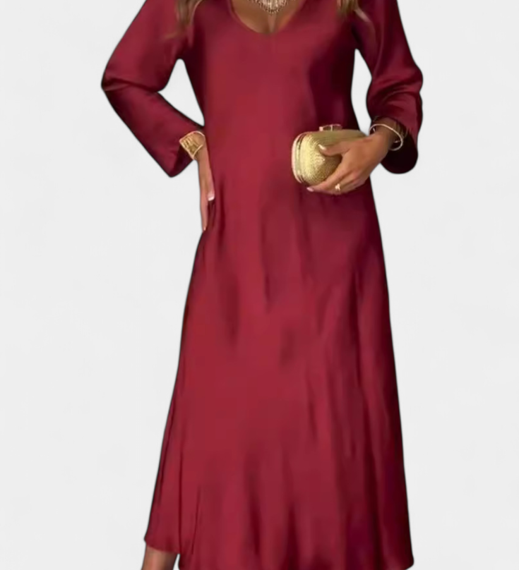 Lena Duga Haljina s Dugim Rukavima i V-Izrezom