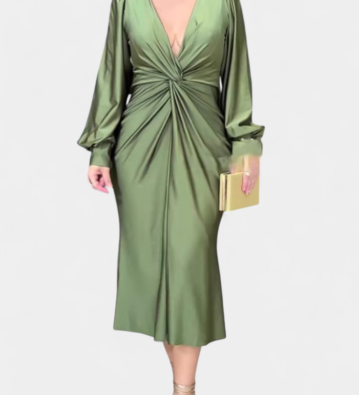 Jelena Haljina s Dugim Rukavima i Dubokim V Izrezom