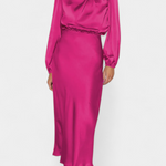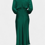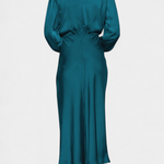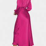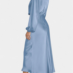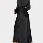 Ženska, elegantna i s rafiniranim prisustvom, haljina Marija kombinira fluidnu maxi siluetu s strukturiranim visokim ovratnikom i suknjom s cvjetnim detaljima. Njen dizajn je idealan za one koji žele istaknuti sofisticiranost u posebnim prilikama bez odricanja od udobnosti.