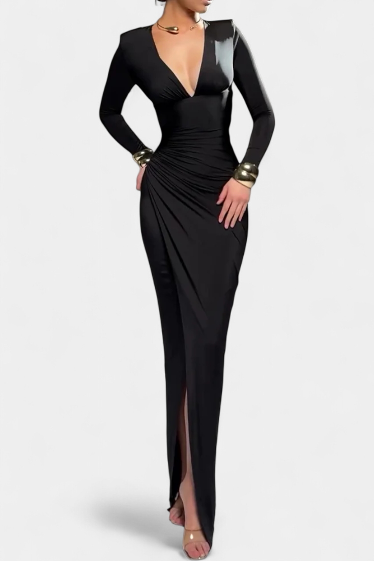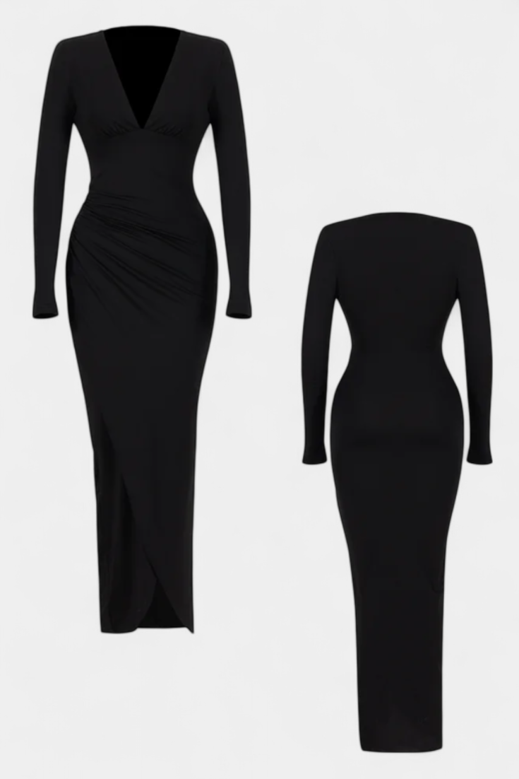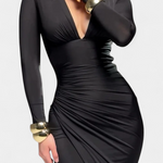 Jelena Haljina s Dugim Rukavima i Dubokim V Izrezom