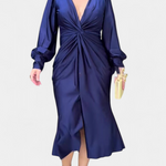 Lena Duga Haljina s Dugim Rukavima i V-Izrezom