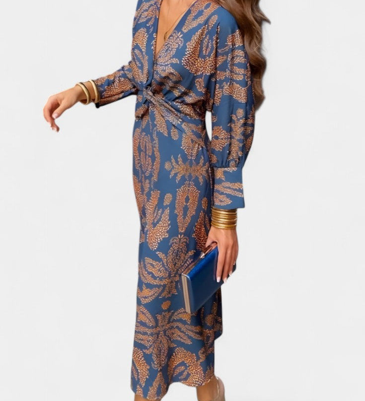 Ema Maxi Haljina s V Izrezom i Prednjim Čvorom