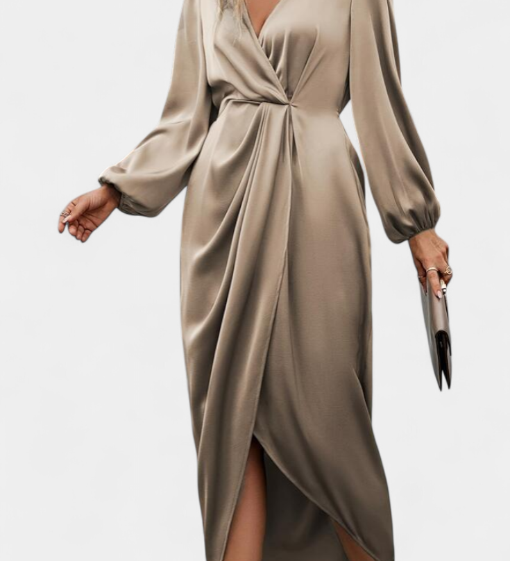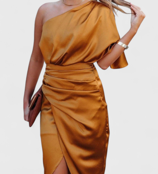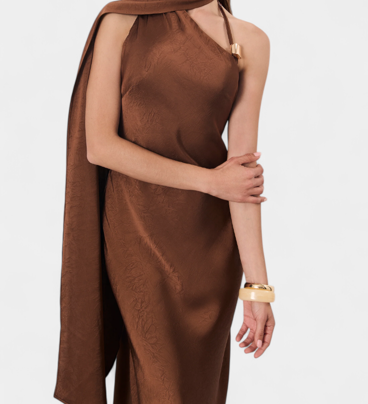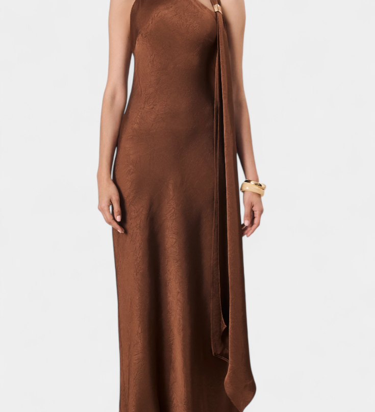 Dragica Asimetrična Duga Haljina u Brončanoj Boji
