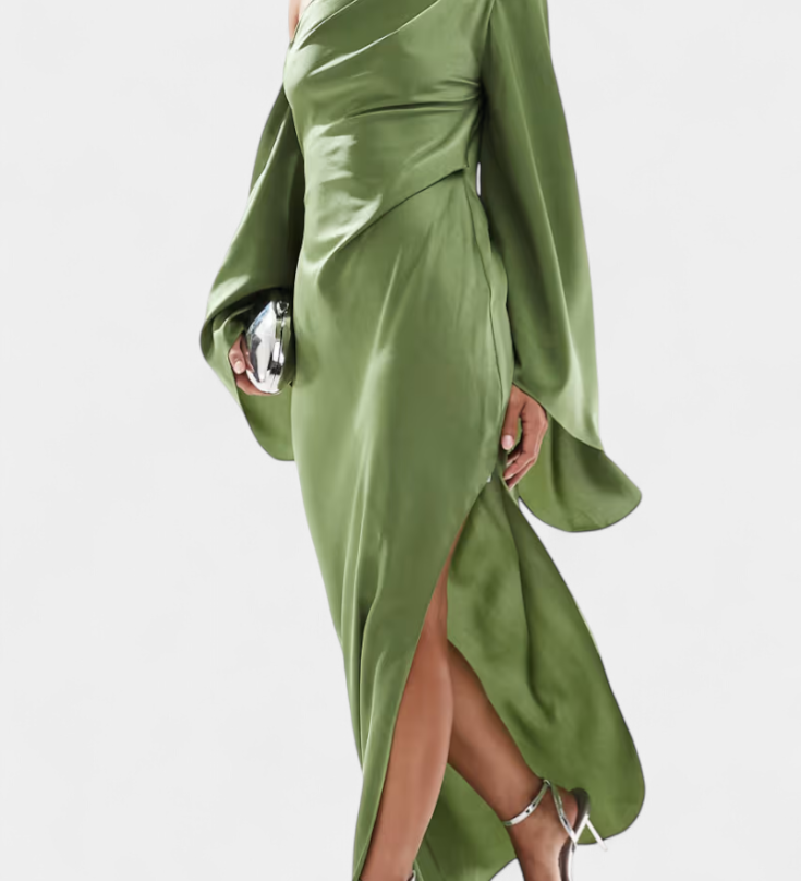 Franka Asimetrična Maxi Haljina s Jednim Rame i Oblikovanom Strukom